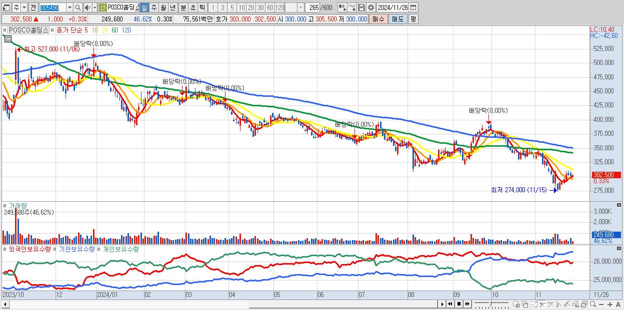 - POSCO홀딩스 (302,500원 ▲ 0.33% , 시총: 249,939억, 외국인 순매수 거래금:51억)