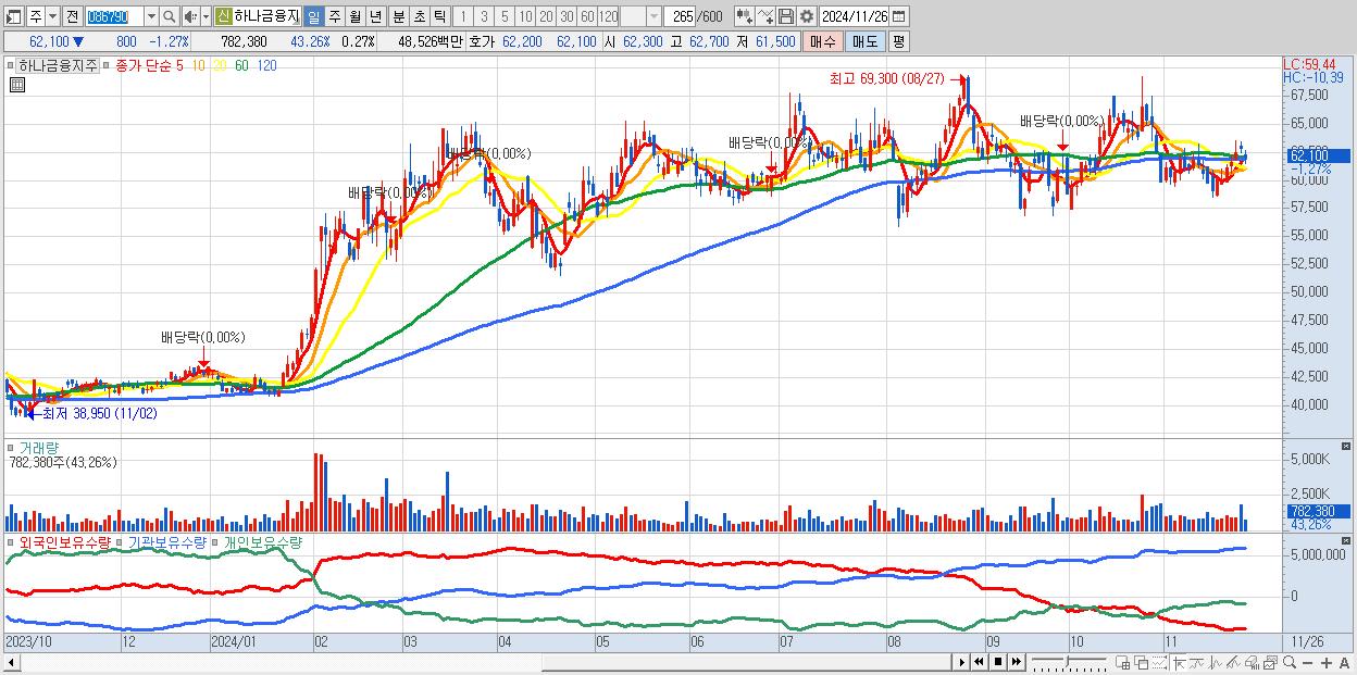 30.하나금융지주 62,100원 ▼ -1.27% (KOSPI, 086790)