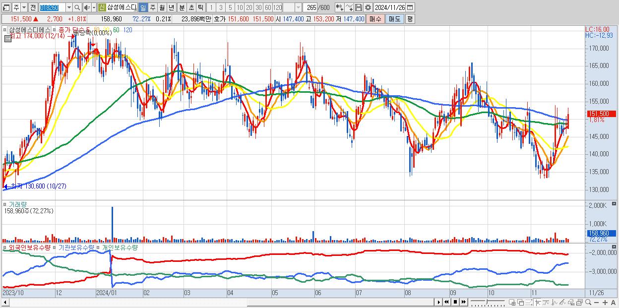 - 삼성에스디에스 (151,500원 ▲ 1.81% , 시총: 117,227억, 외국인 순매수 거래금:38억)