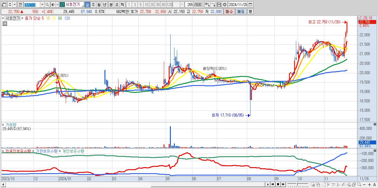 서호전기 22,700원 ▲ 2.48% (KOSDAQ, 065710)