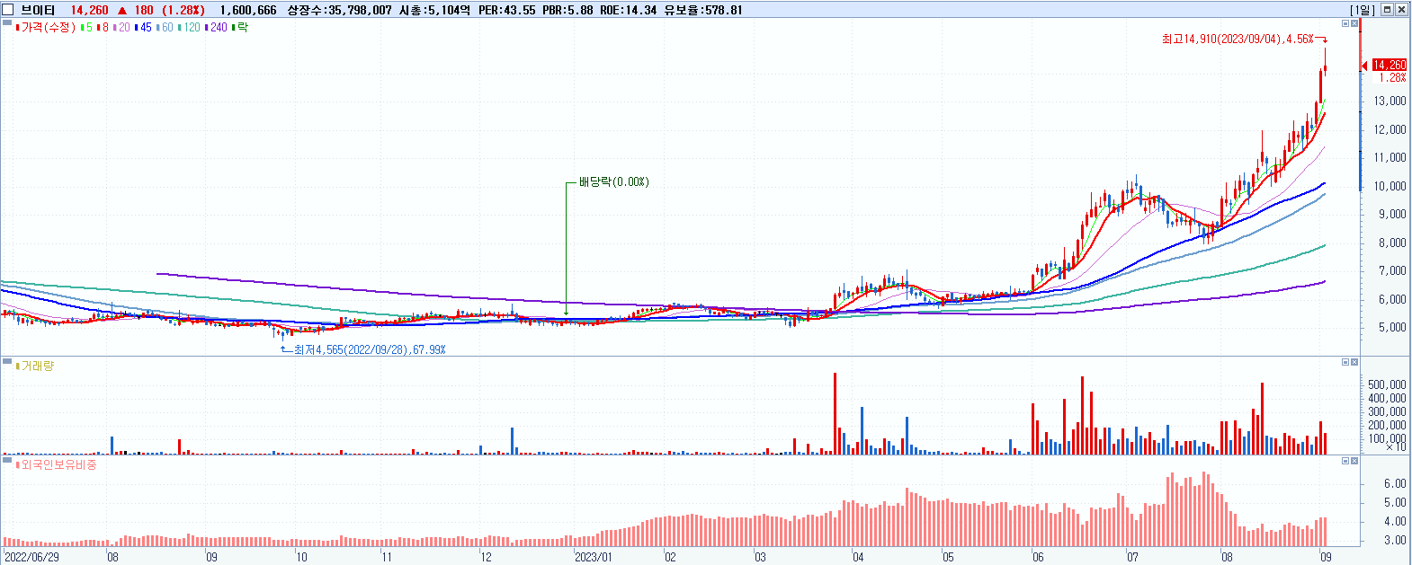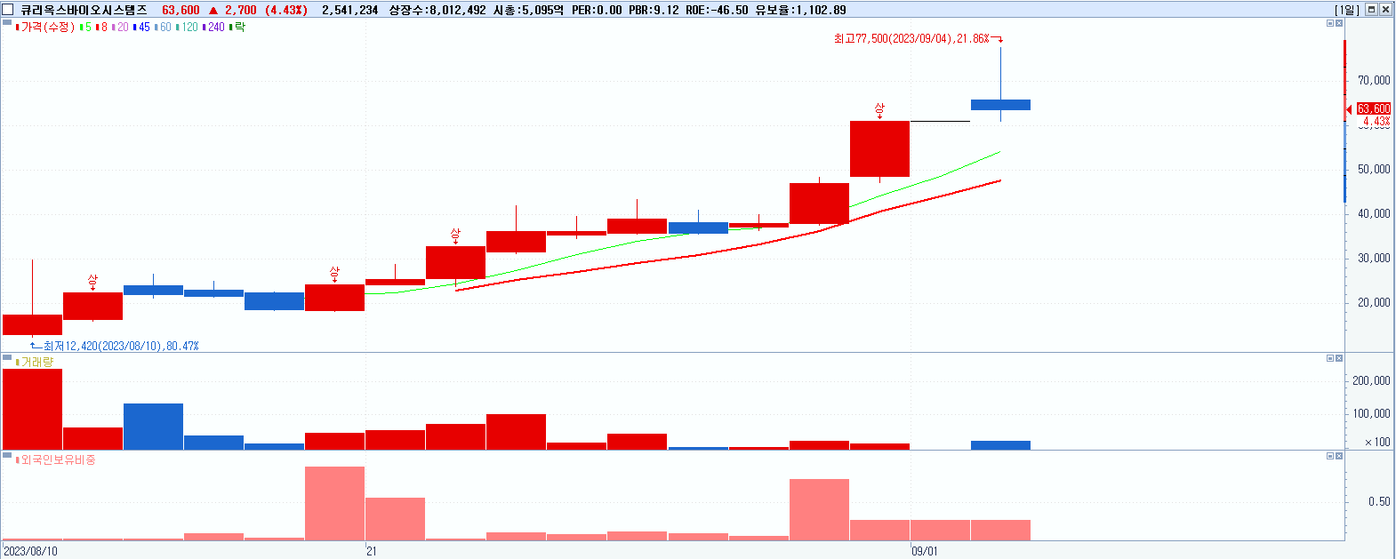 시총: 5,105억 거래량: 1,600,671 거래대금:231억