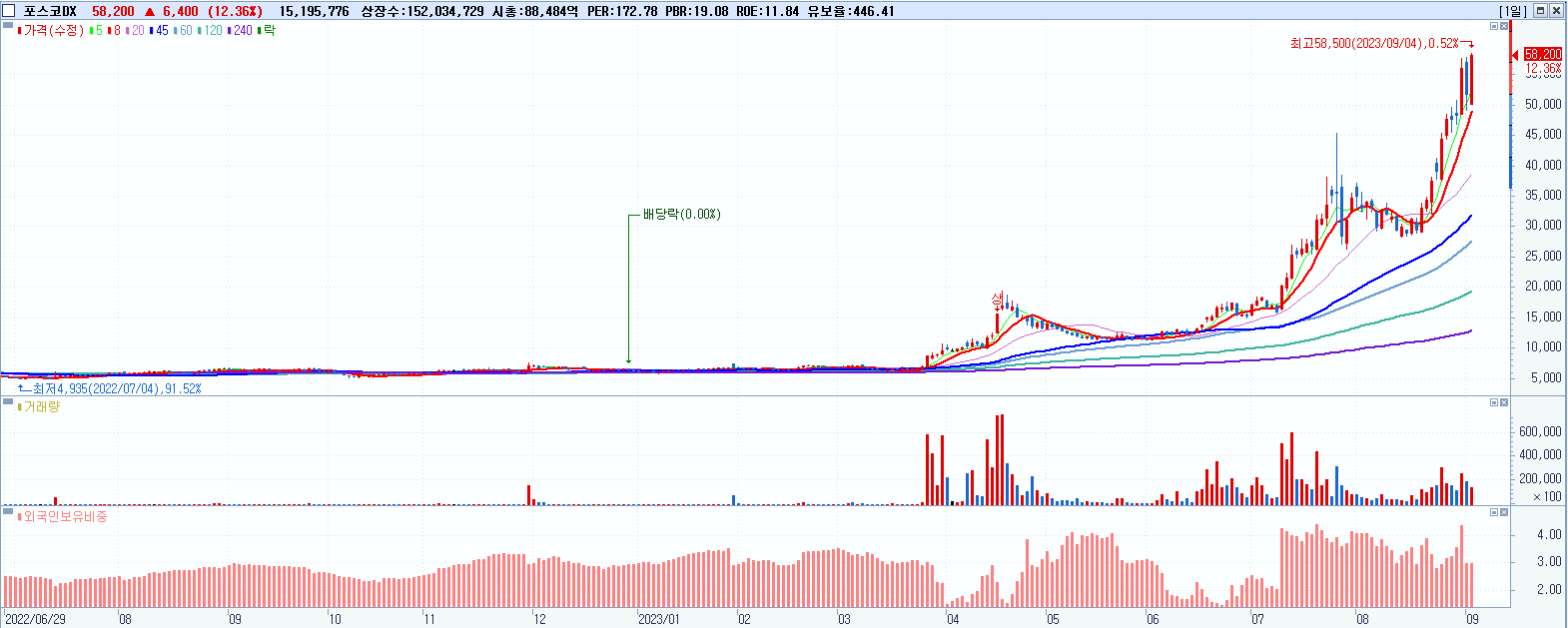- 포스코DX (58,200원 ▲ 12.36% , 시총: 88,484억, 거래량: 15,214,152, 거래대금:8,312억, KOSDAQ)