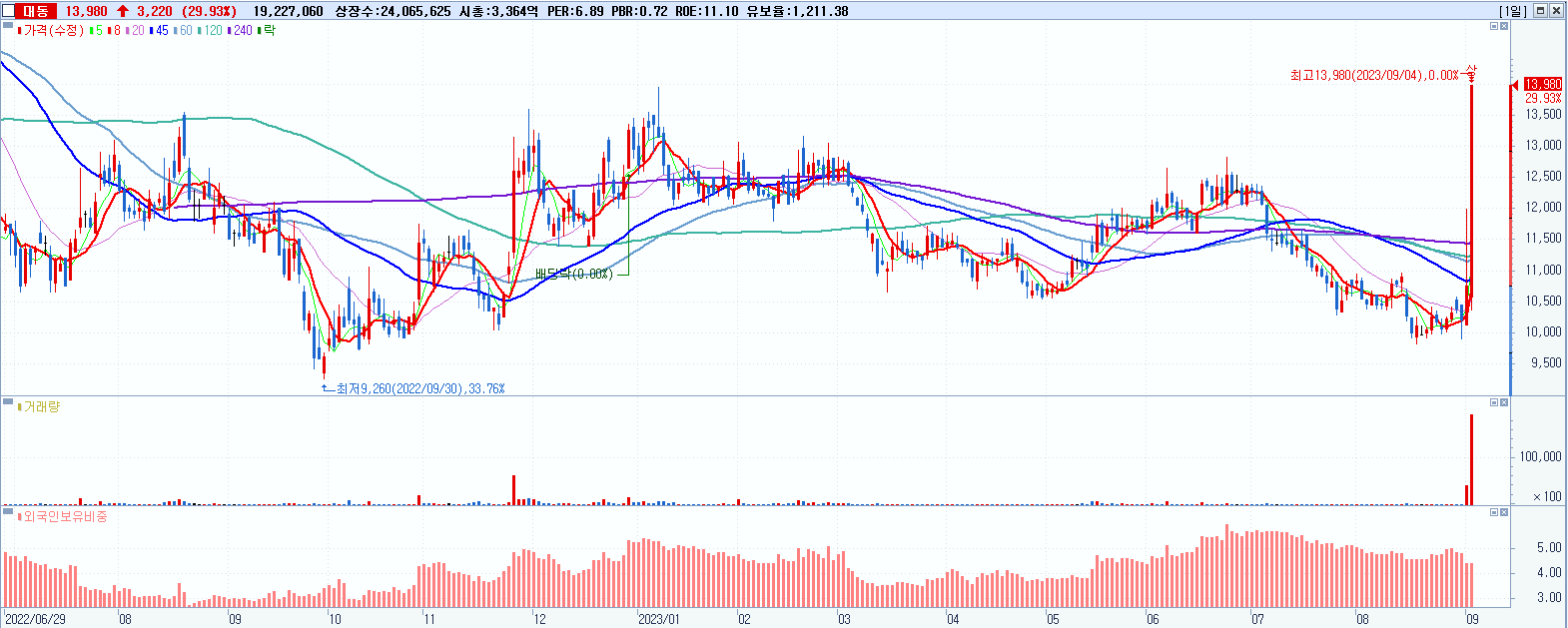 대동 13,980원 ▲ 29.93% (KOSPI, 000490)