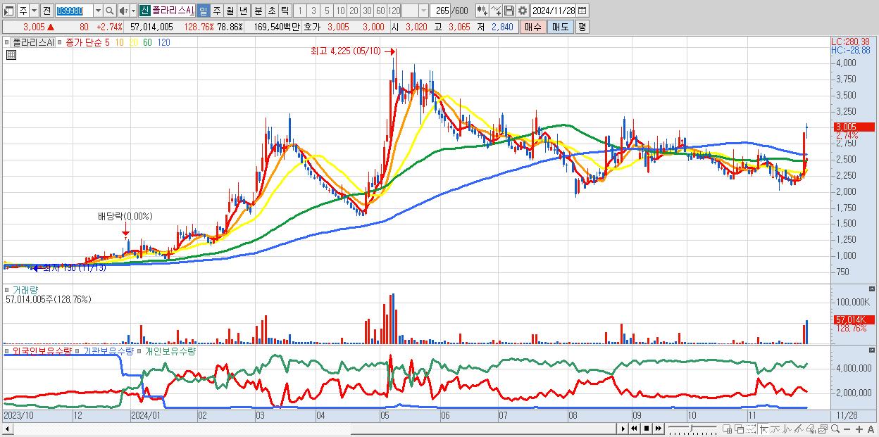 - 폴라리스AI (3,005원 ▲ 2.74% , 시총: 2,173억, 거래량: 57,014,005, 거래대금:1,695억)