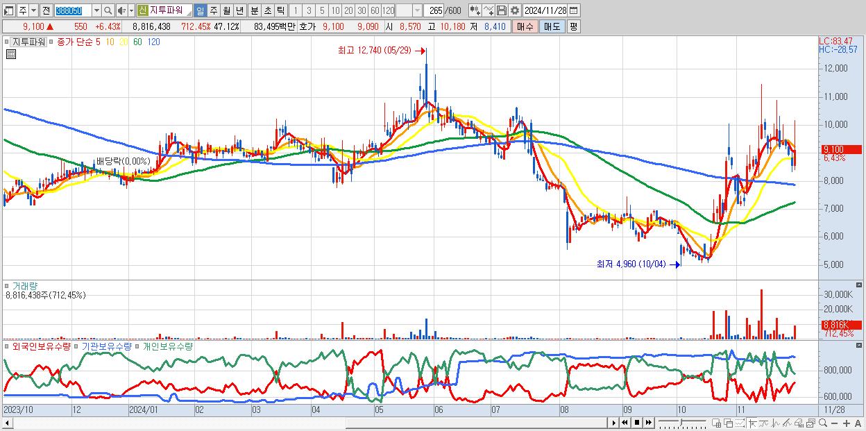 30.지투파워 9,100원 ▲ 6.43% (KOSDAQ, 388050)