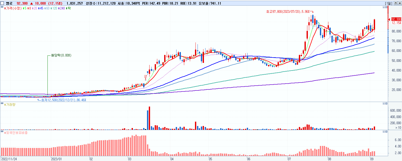 시총: 28,600억 거래량: 2,133,241 거래대금:4,510억