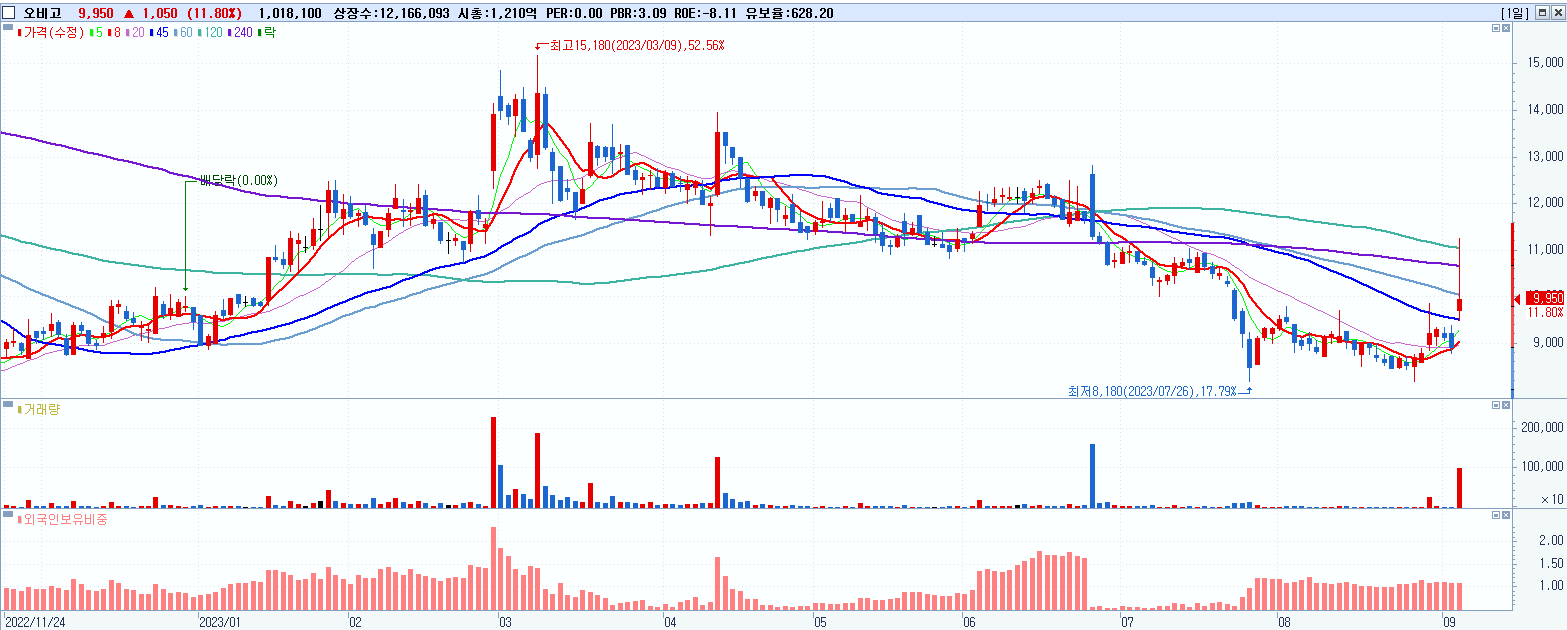 29.오비고 9,950원 ▲ 11.8% (KOSDAQ, 352910)