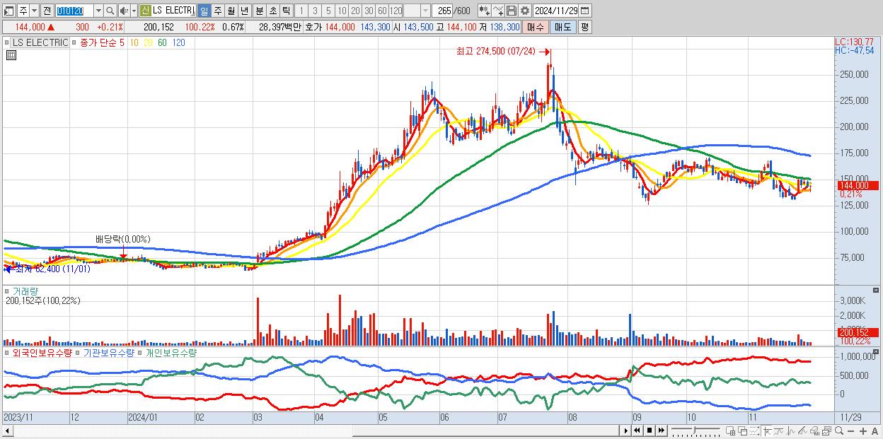 - LS ELECTRIC (144,000원 ▲ 0.21% , 시총: 43,200억, 외국인 순매수 거래금:46억)