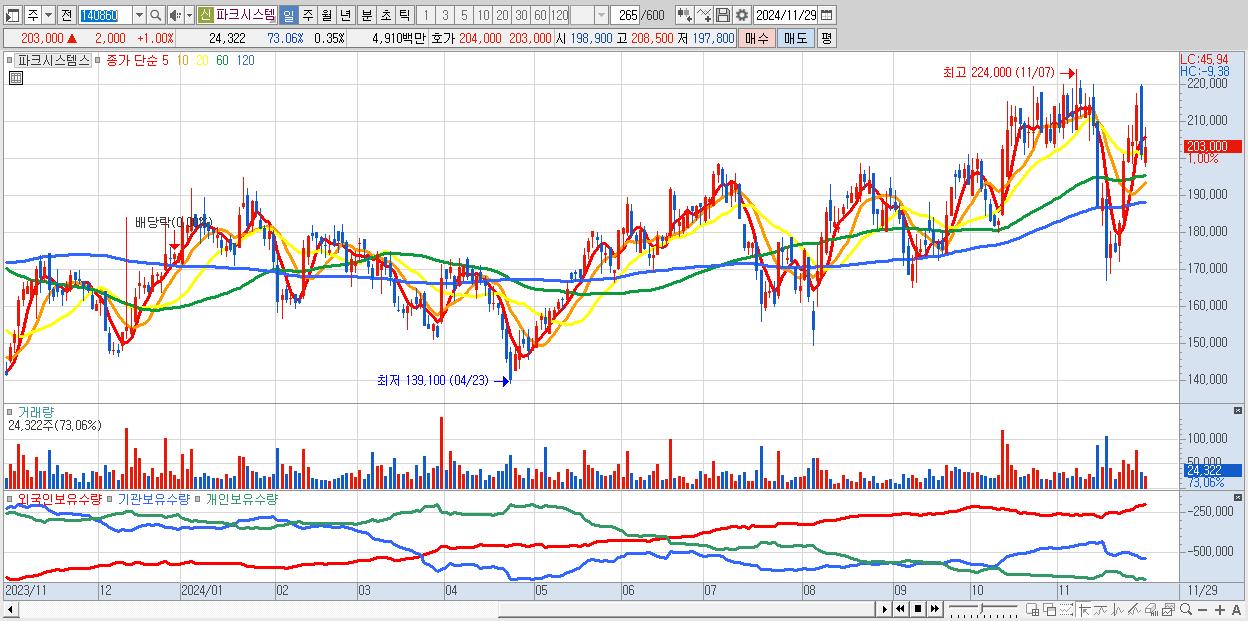 30.파크시스템스 203,000원 ▲ 1% (KOSDAQ, 140860)