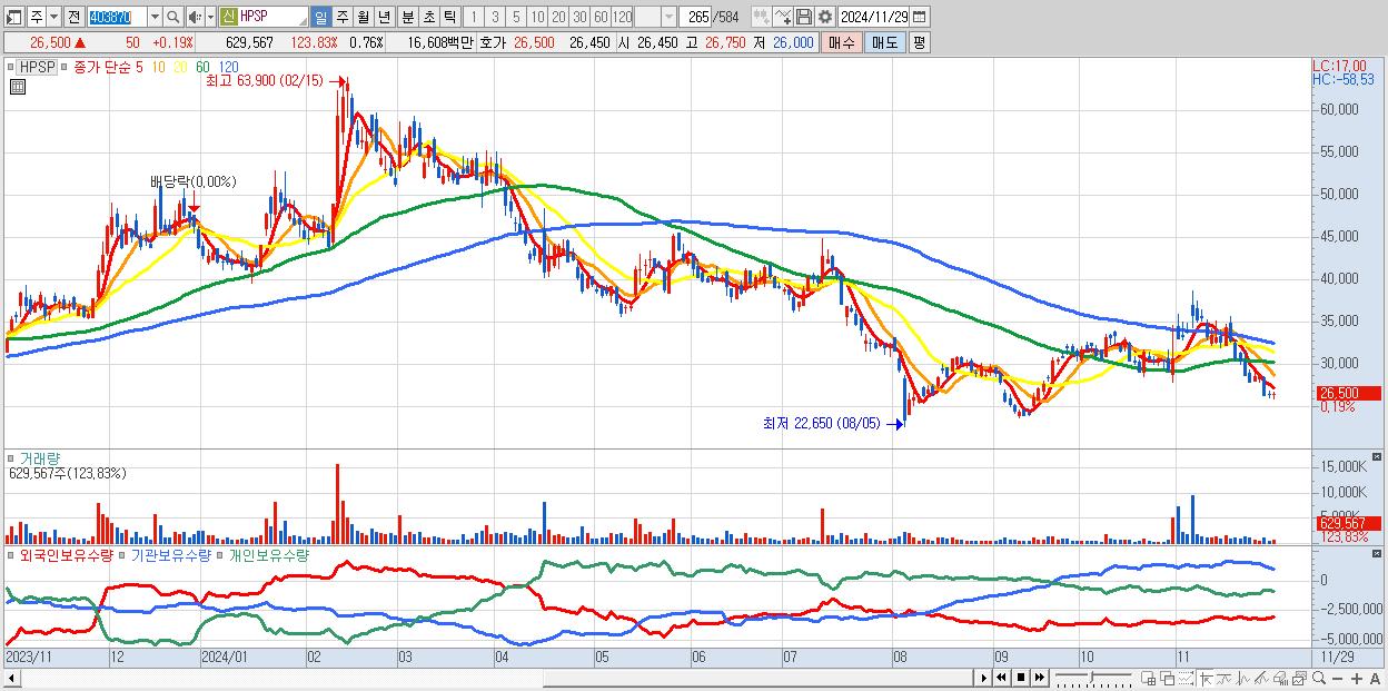 - HPSP (26,500원 ▲ 0.19% , 시총: 21,995억, 외국인 순매수 거래금:34억)