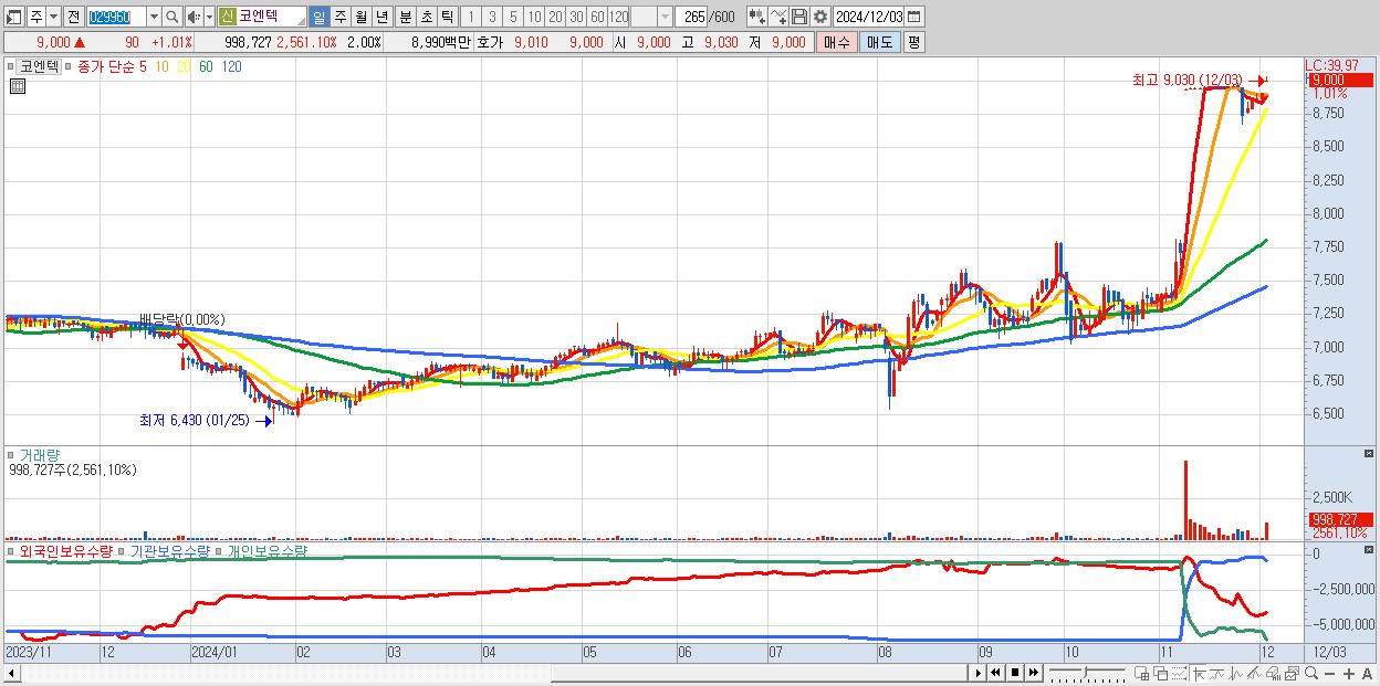 코엔텍 9,000원 ▲ 1.01% (KOSDAQ, 029960)