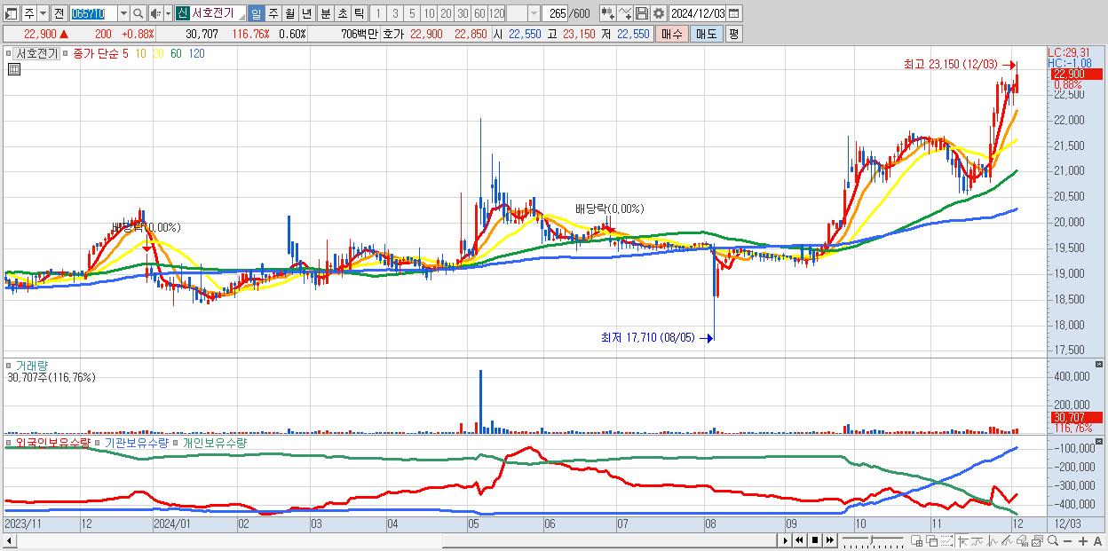 서호전기 22,900원 ▲ 0.88% (KOSDAQ, 065710)