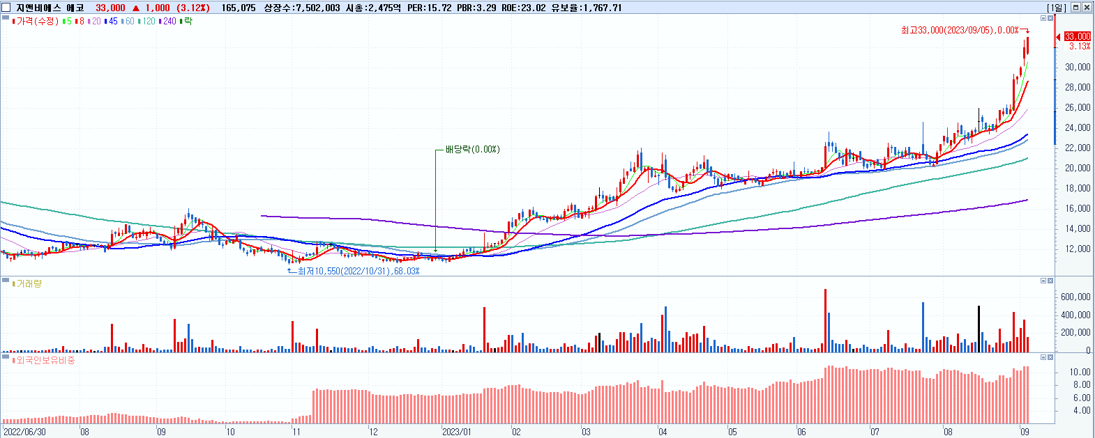 지앤비에스 에코 33,000원 ▲ 3.13% (KOSDAQ, 382800)
