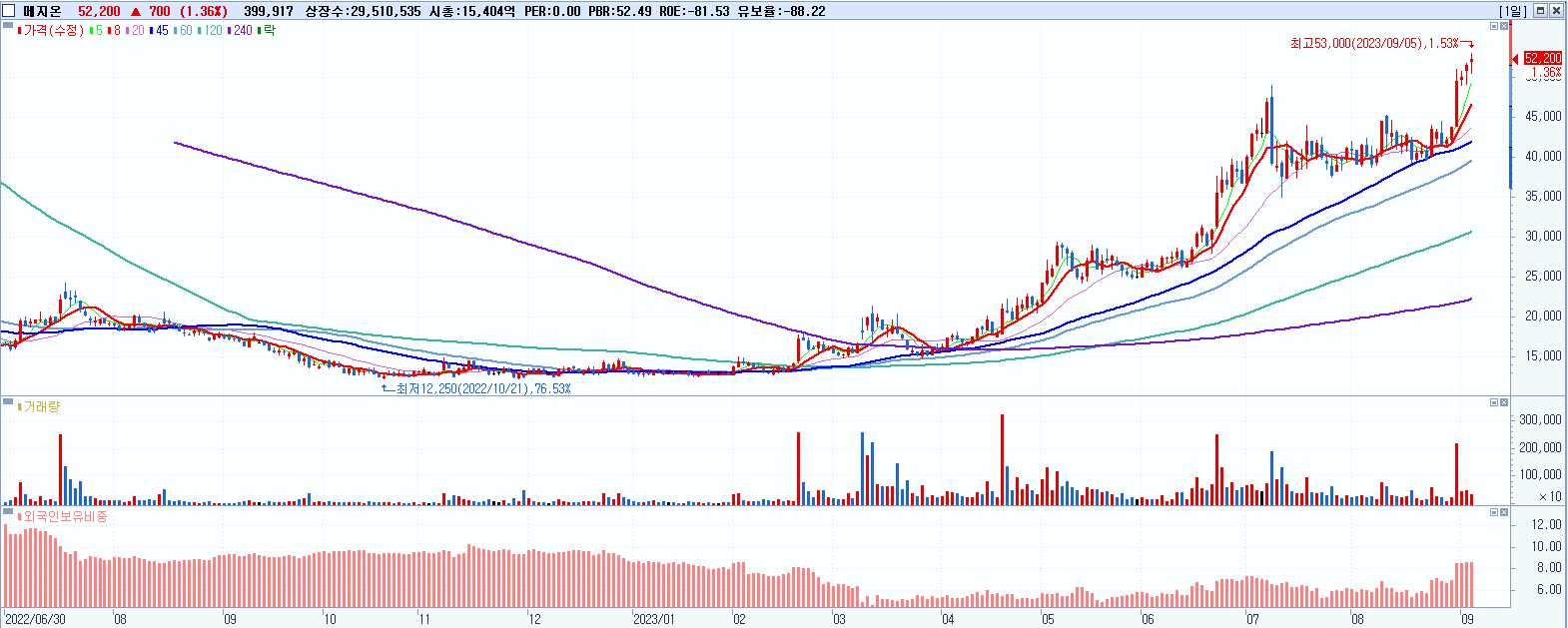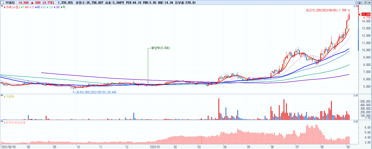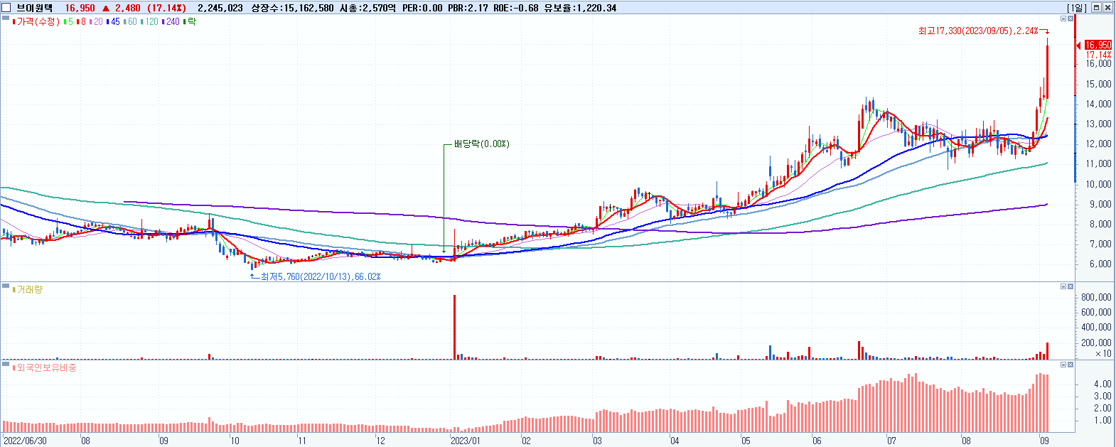 시총: 2,570억 거래량: 2,246,976 거래대금:368억