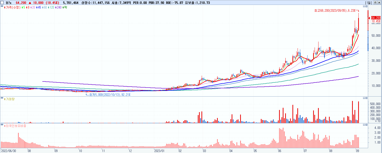 시총: 7,349억 거래량: 5,706,213 거래대금:3,589억