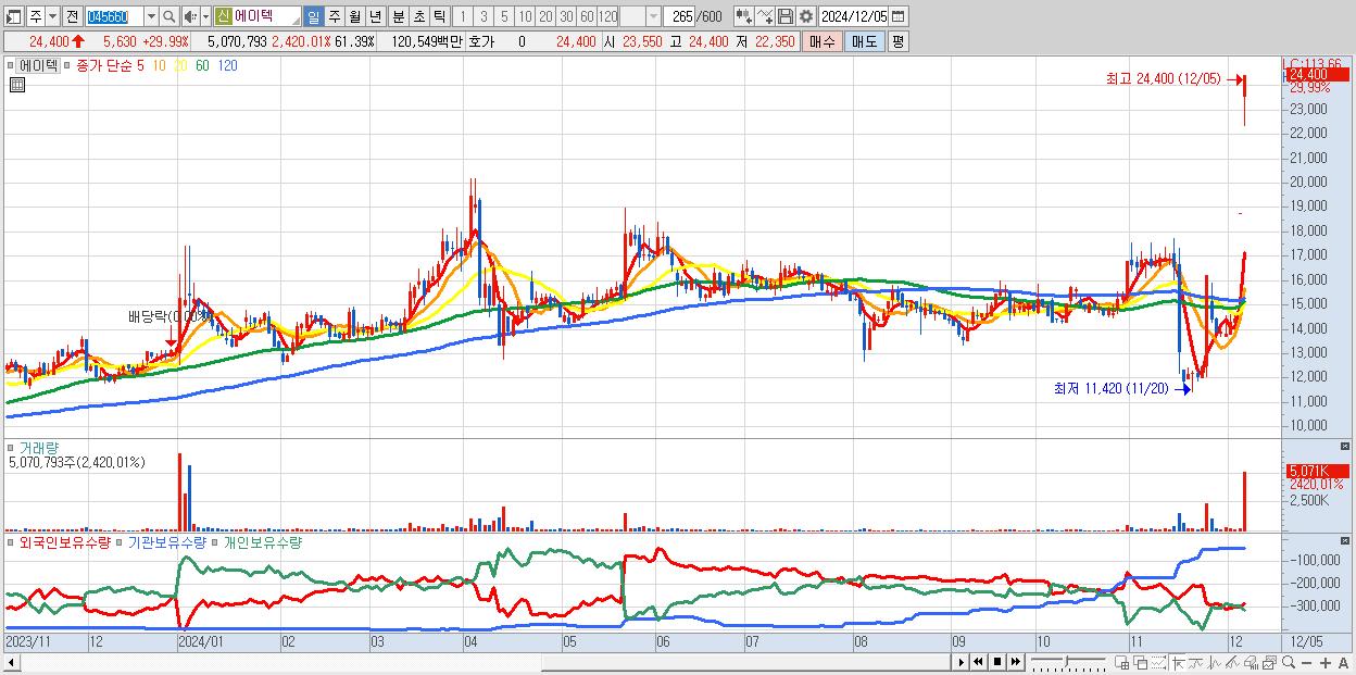 2.에이텍 24,400원 ▲ 29.99% (KOSDAQ, 045660)