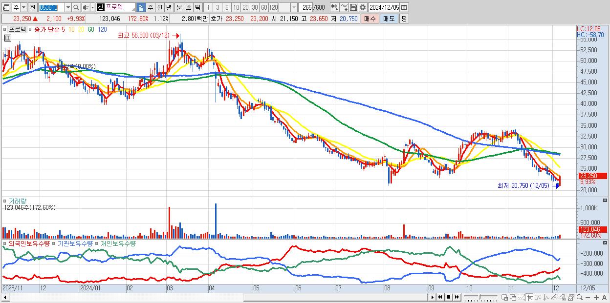 30.프로텍 23,250원 ▲ 9.93% (KOSDAQ, 053610)