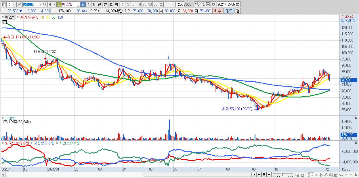 - 에스엠 (78,500원 ▼ -4.62% , 시총: 18,333억, 외국인 순매수 거래금:27억)