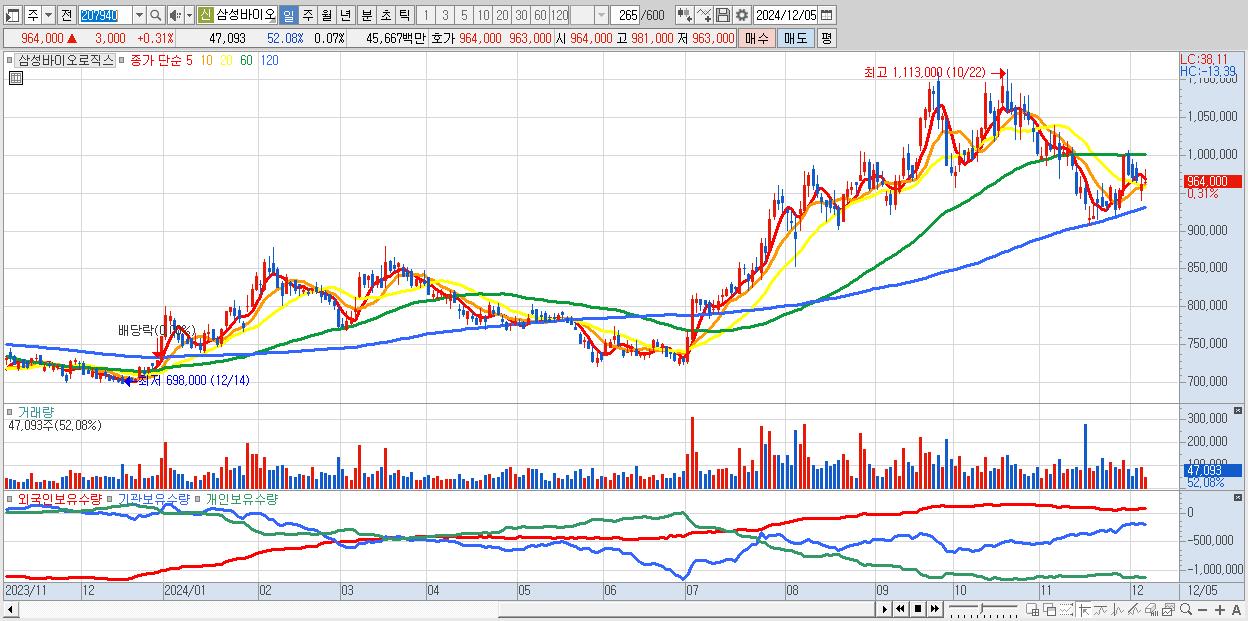 - 삼성바이오로직스 (964,000원 ▲ 0.31% , 시총: 686,117억, 외국인 순매수 거래금:54억)