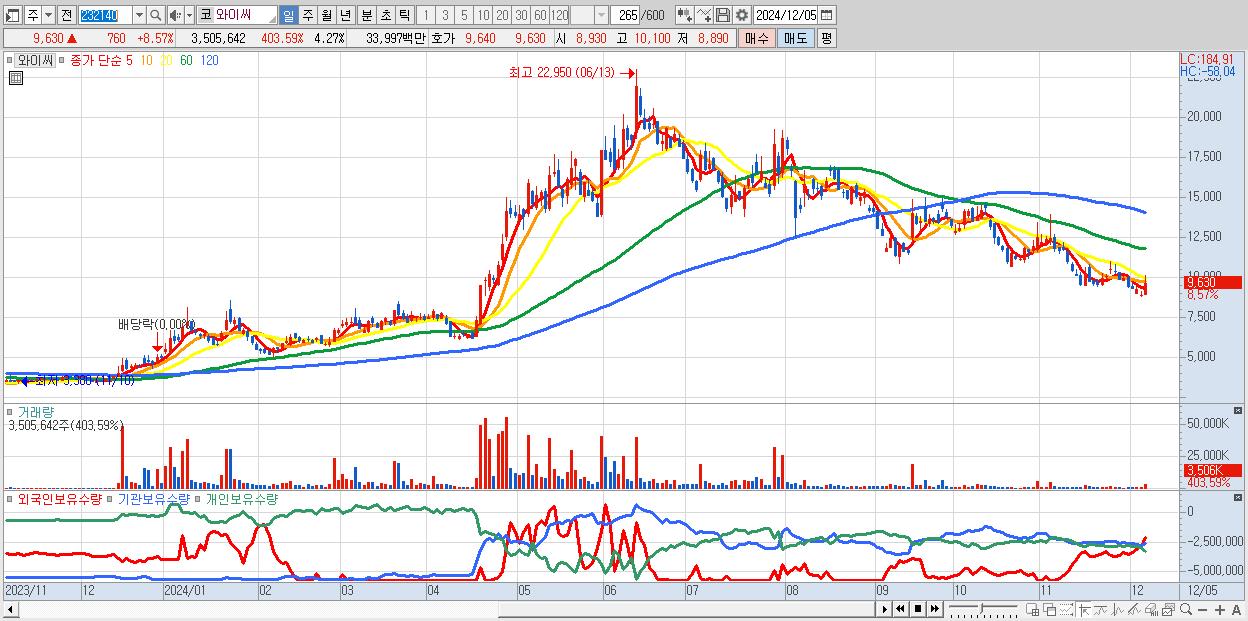 - 와이씨 (9,630원 ▲ 8.57% , 시총: 7,901억, 외국인 순매수 거래금:27억)