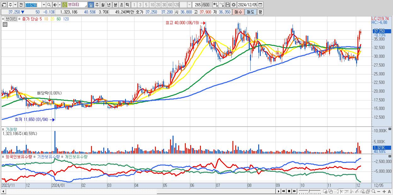 - 브이티 (37,250원 ▼ -0.13% , 시총: 13,335억, 외국인 순매수 거래금:47억)