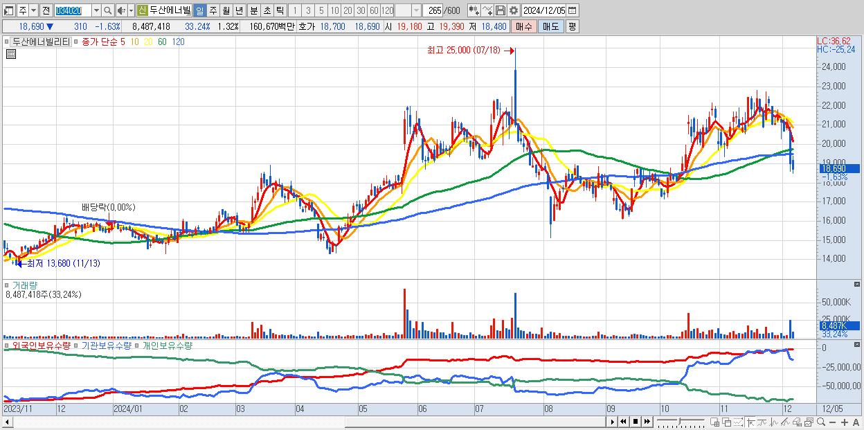 - 두산에너빌리티 (18,690원 ▼ -1.63% , 시총: 119,721억, 외국인 순매수 거래금:30억)