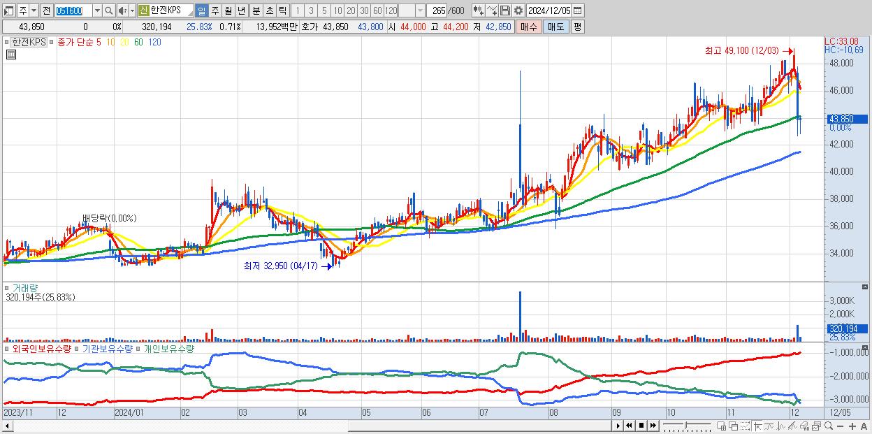 30.한전KPS 43,850원 0% (KOSPI, 051600)