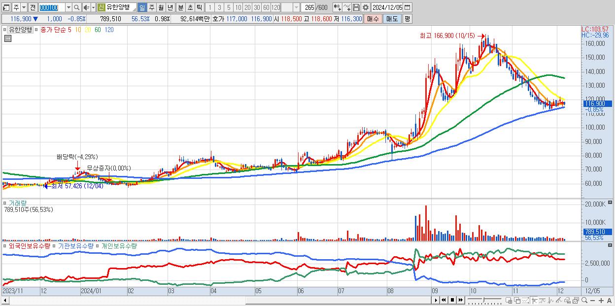 - 유한양행 (116,900원 ▼ -0.85% , 시총: 93,764억, 외국인 순매수 거래금:29억)