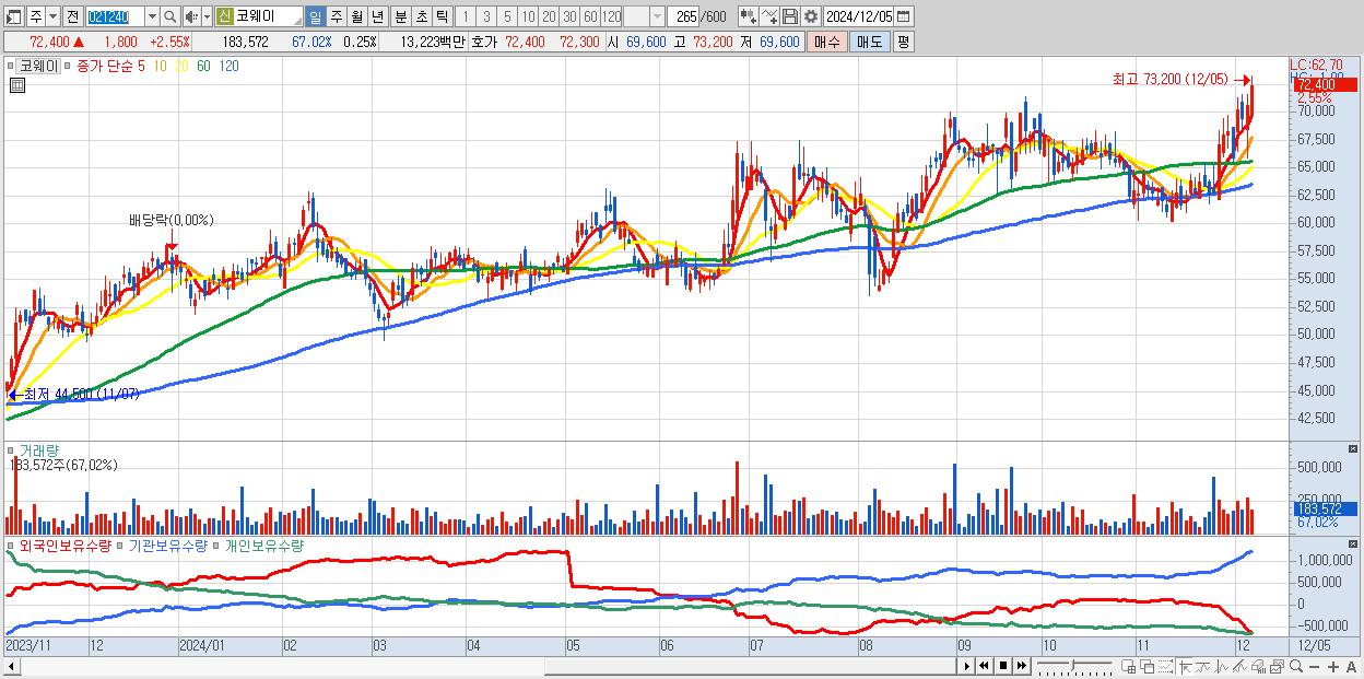 코웨이 72,400원 ▲ 2.55% (KOSPI, 021240)