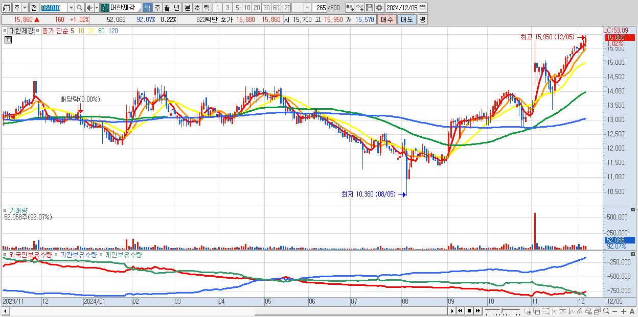 대한제강 15,860원 ▲ 1.02% (KOSPI, 084010)