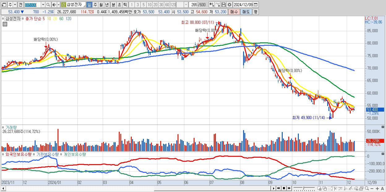 1.삼성전자 53,400원 ▼ -1.29% (KOSPI, 005930)