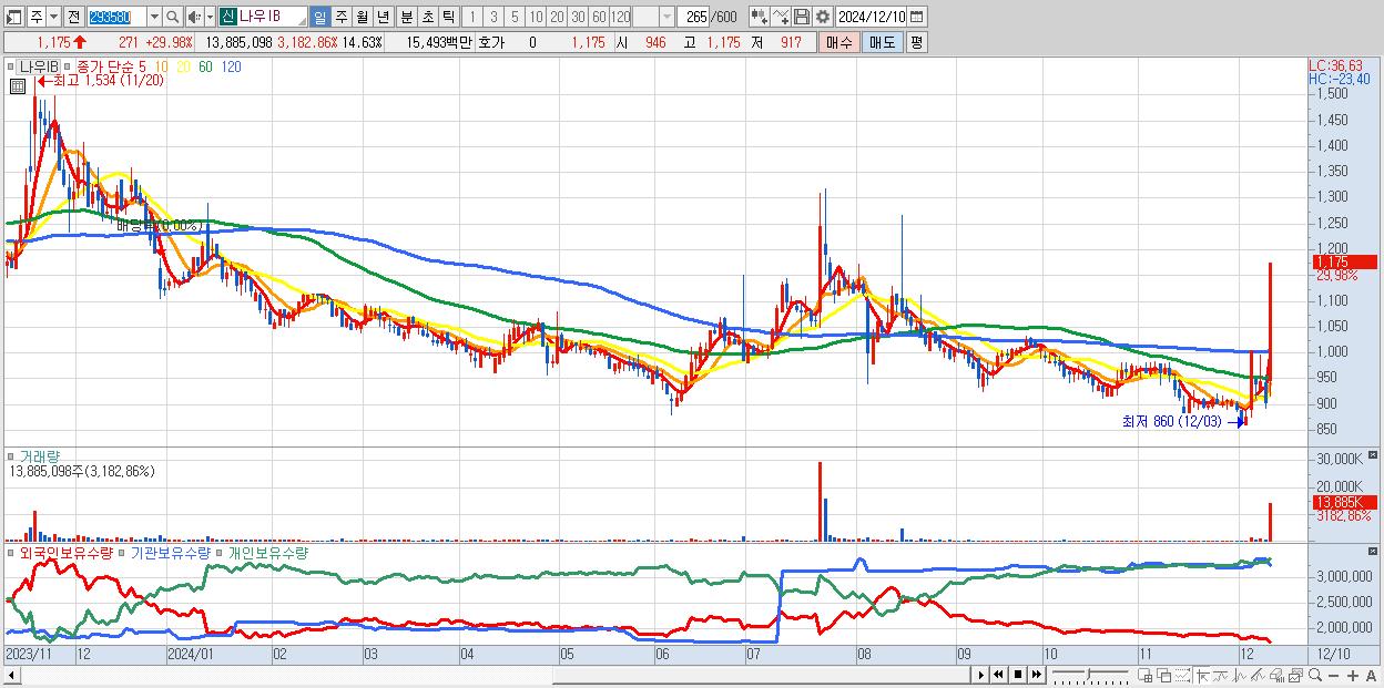 1.나우IB 1,175원 ▲ 29.98% (KOSDAQ, 293580)