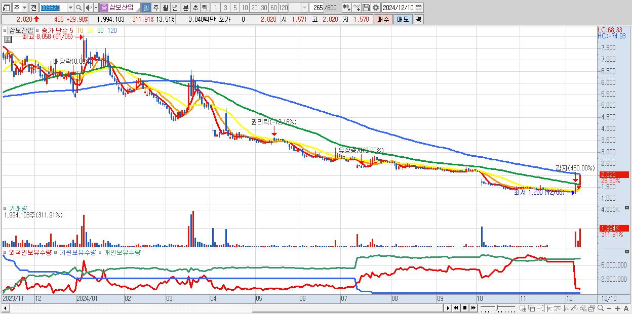 - 삼보산업 (2,020원 ▲ 29.9% , 시총: 298억, 거래량: 1,994,103, 거래대금:38억)