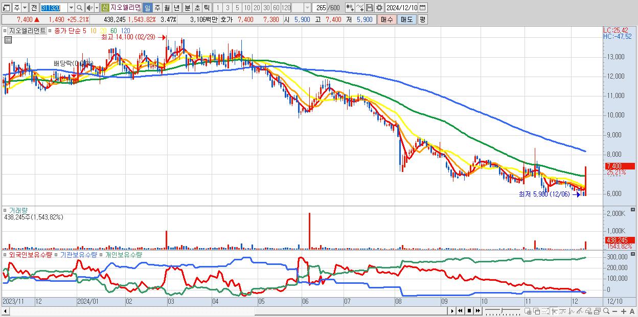 - 지오엘리먼트 (7,400원 ▲ 25.21% , 시총: 933억, 거래량: 438,245, 거래대금:31억)