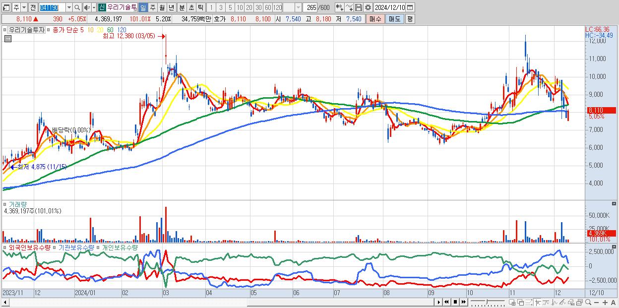 - 우리기술투자 (8,110원 ▲ 5.05% , 시총: 6,812억, 외국인 순매수 거래금:50억)