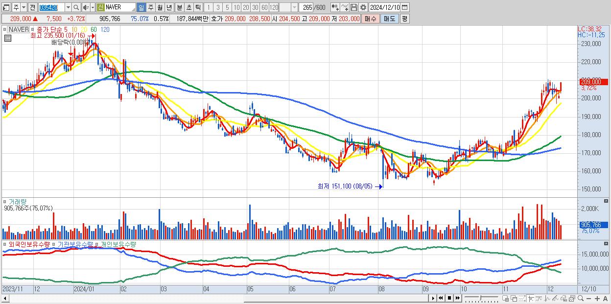 2.NAVER 209,000원 ▲ 3.72% (KOSPI, 035420)