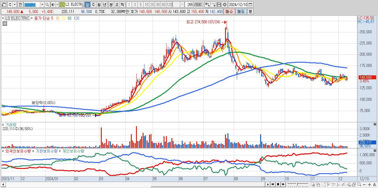 - LS ELECTRIC (148,600원 ▲ 3.48% , 시총: 44,580억, 외국인 순매수 거래금:43억)