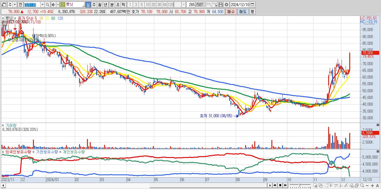 - 루닛 (78,000원 ▲ 19.45% , 시총: 22,575억, 외국인 순매수 거래금:197억)