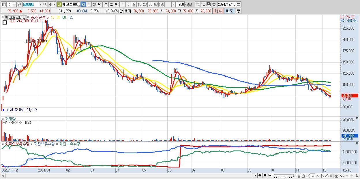 - 에코프로머티 (75,900원 ▲ 4.83% , 시총: 52,425억, 외국인 순매수 거래금:69억)