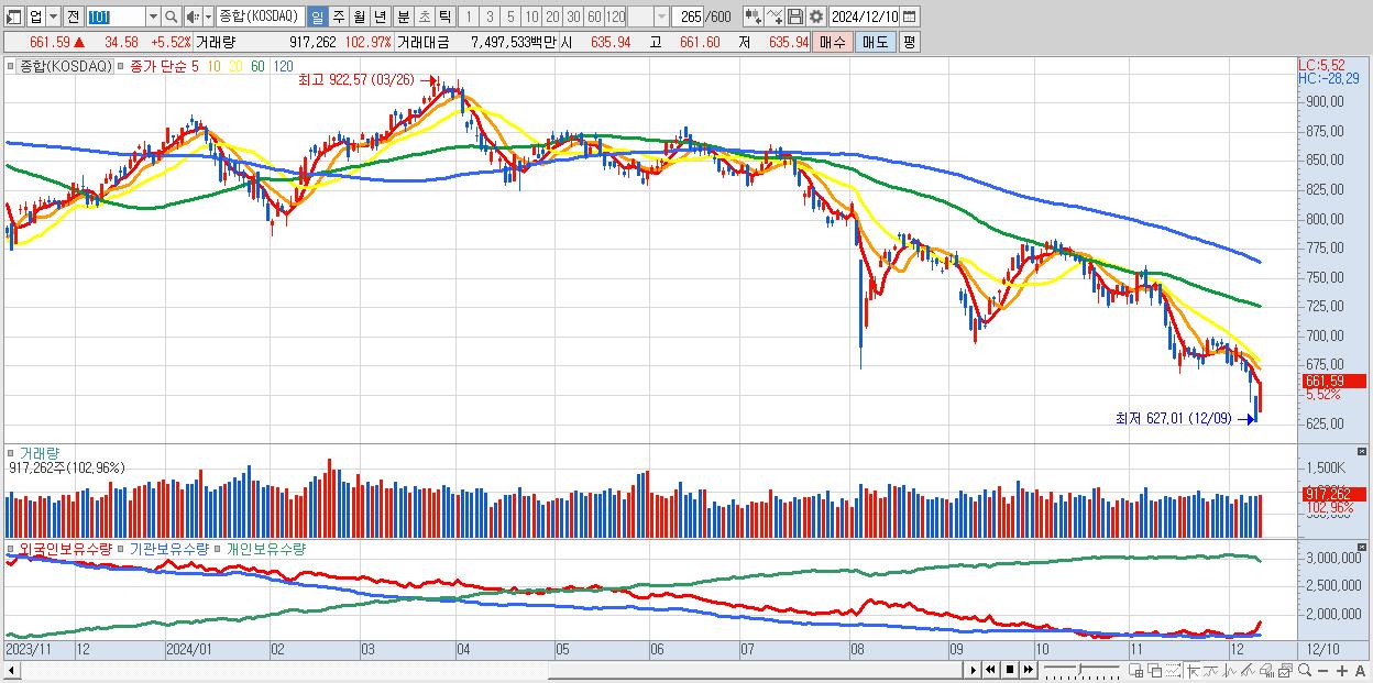 | 12/10 | 661.59 | ▲5.52% | -4,145억 | 2,916억 | 1,180억 | 49억 |