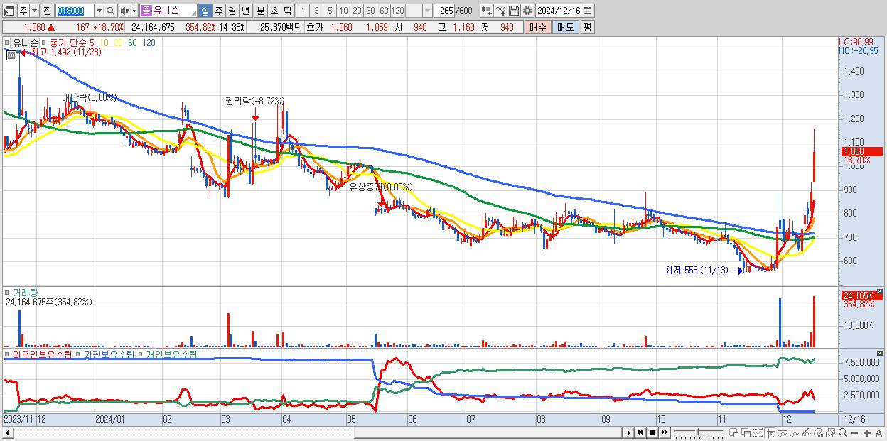 - 유니슨 (1,060원 ▲ 18.7% , 시총: 1,785억, 거래량: 24,164,675, 거래대금:259억)