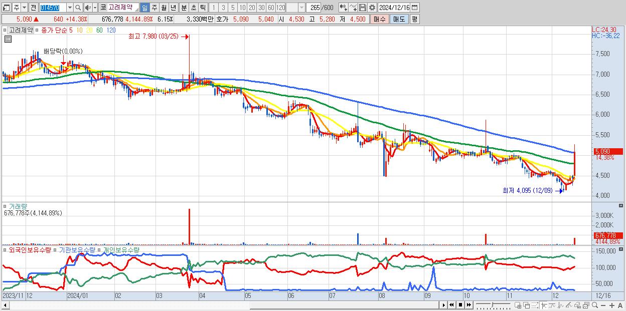 30.고려제약 5,090원 ▲ 14.38% (KOSDAQ, 014570)