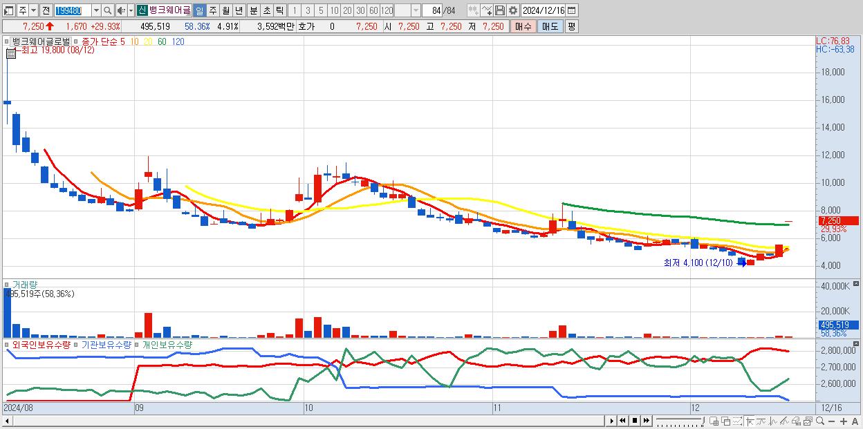 - 뱅크웨어글로벌 (7,250원 ▲ 29.93% , 시총: 732억, 거래량: 495,519, 거래대금:36억)