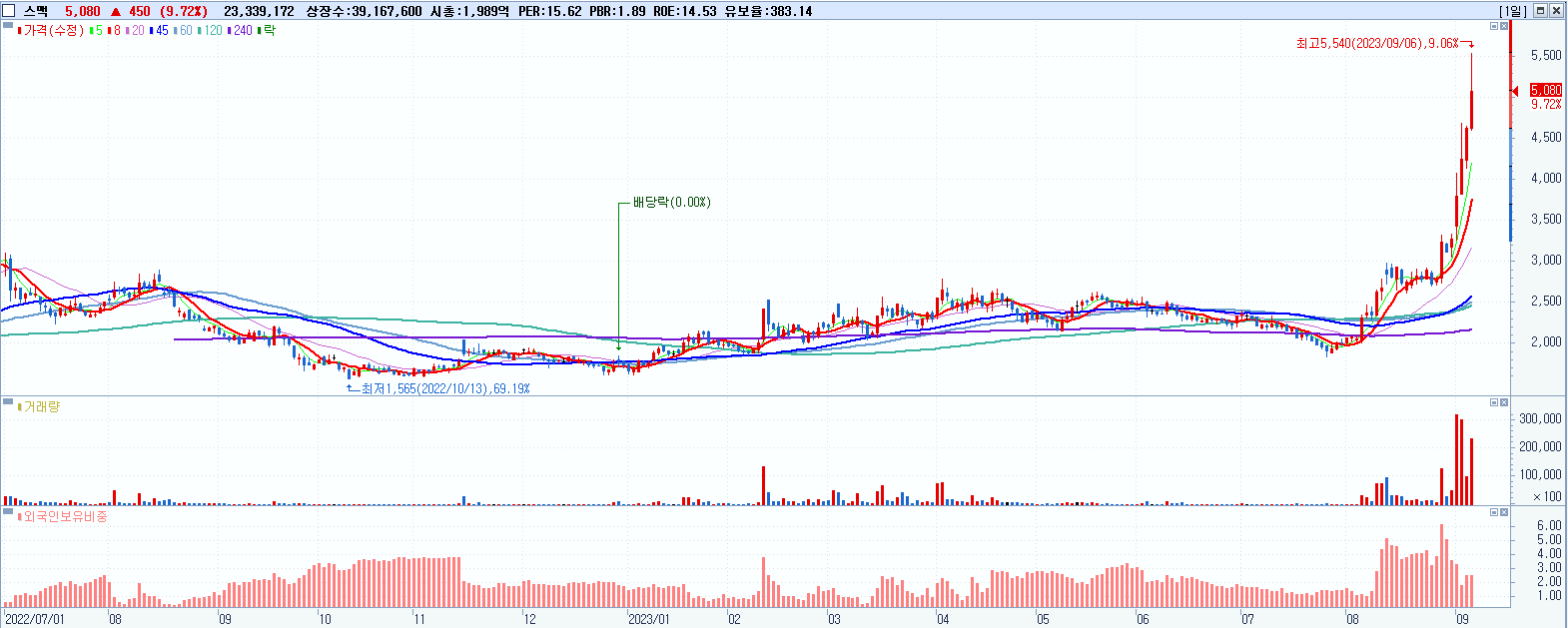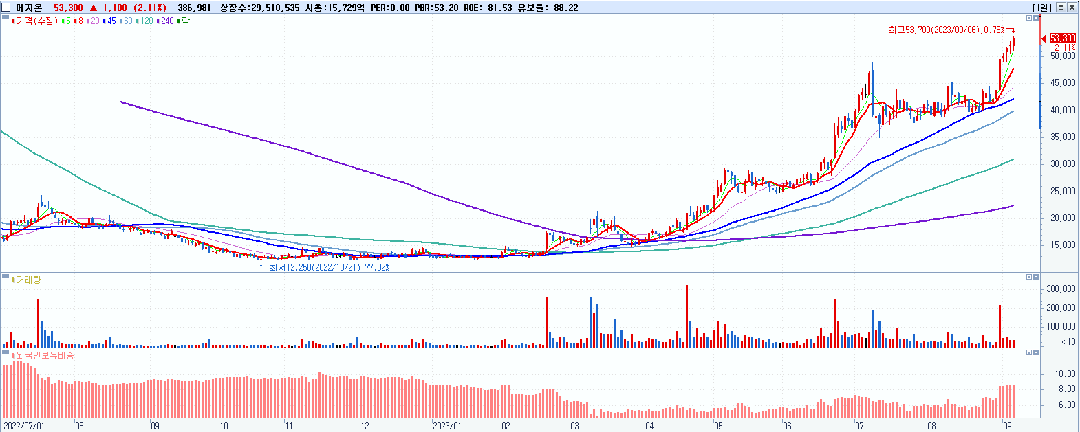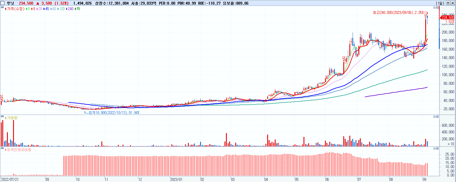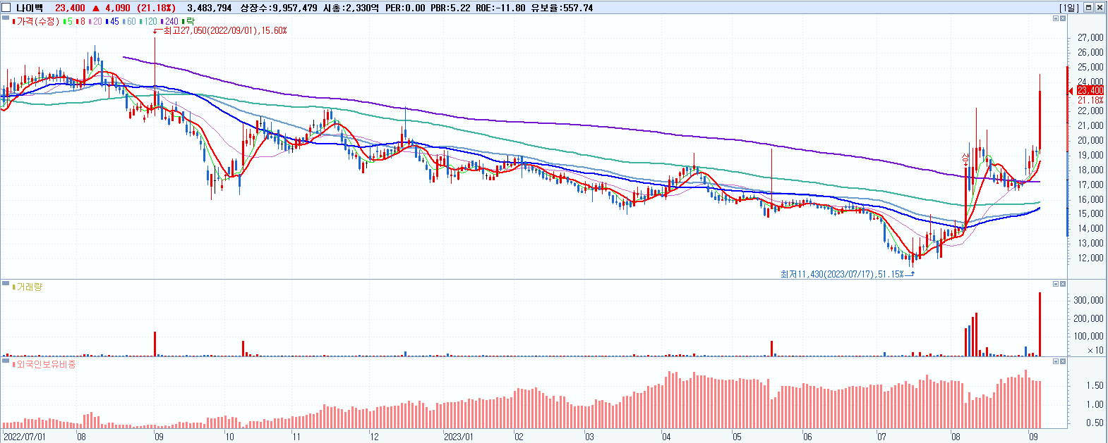 시총: 2,330억 거래량: 3,524,184 거래대금:804억