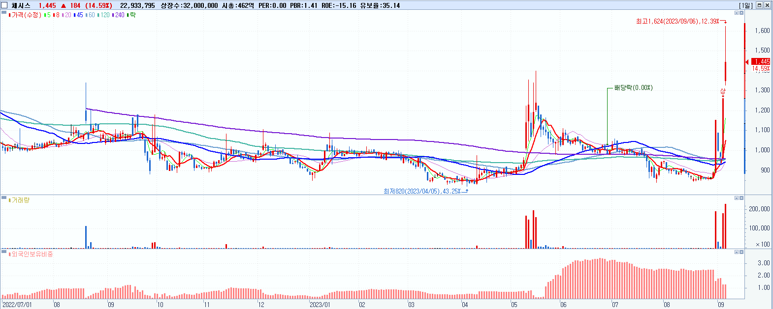 시총: 462억 거래량: 23,062,827 거래대금:344억