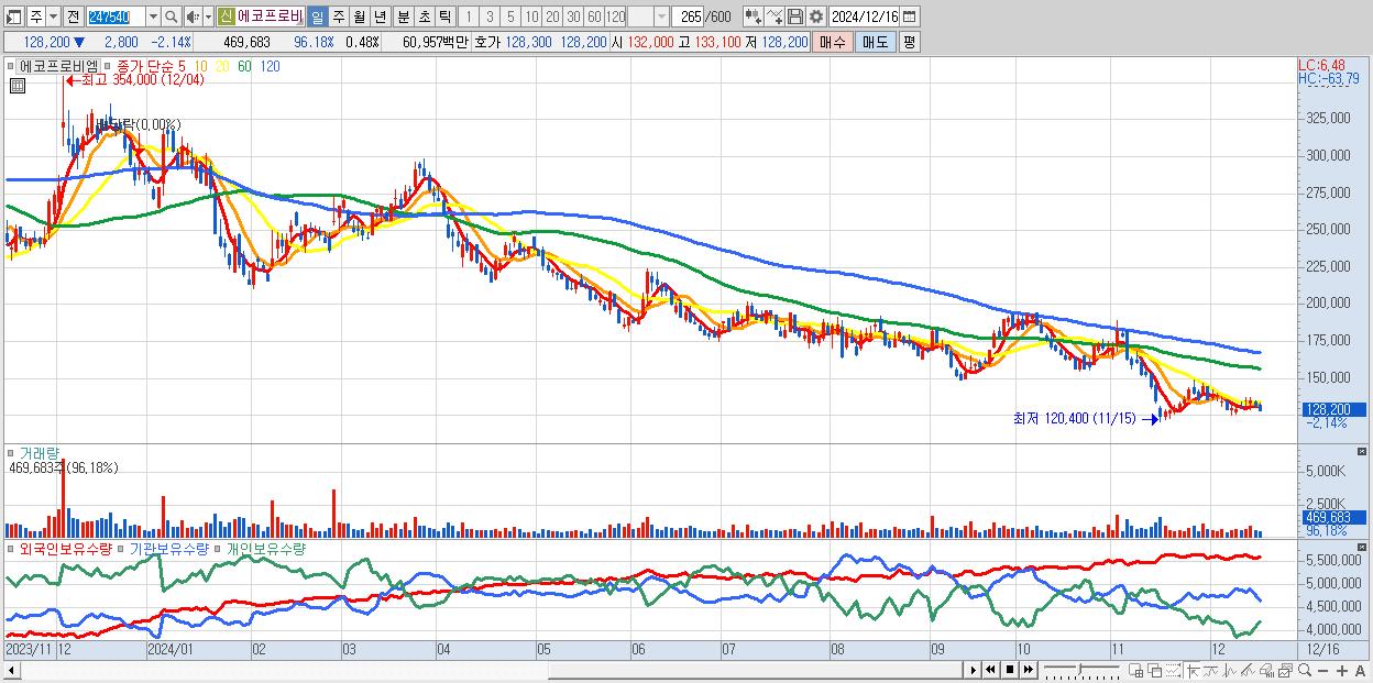 - 에코프로비엠 (128,200원 ▼ -2.14% , 시총: 125,381억, 외국인 순매수 거래금:28억)