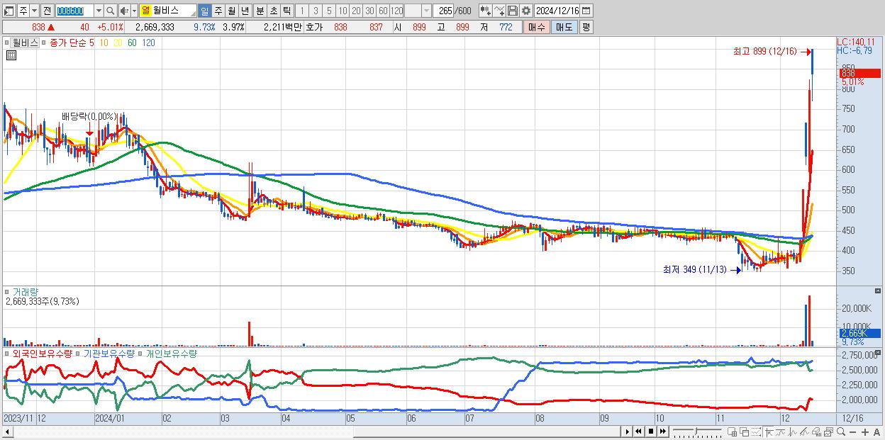 - 윌비스 (838원 ▲ 5.01% , 시총: 563억, 거래량: 2,669,333, 거래대금:22억, KOSPI)