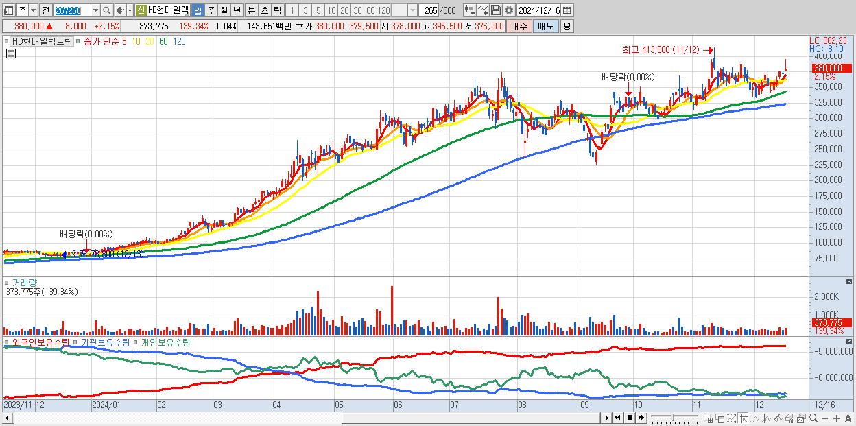 - HD현대일렉트릭 (380,000원 ▲ 2.15% , 시총: 136,979억, 거래량: 373,775, 거래대금:1,437억)