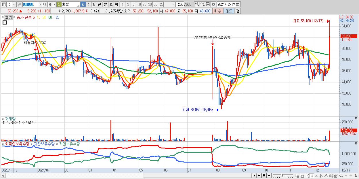 30.효성 52,200원 ▲ 11.18% (KOSPI, 004800)
