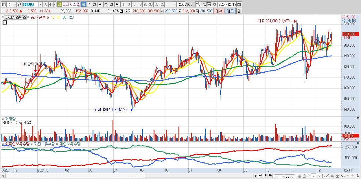 - 파크시스템스 (210,500원 ▲ 1.69% , 시총: 14,705억, 외국인 순매수 거래금:26억)
